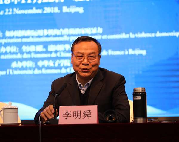 全國婦聯(lián)聯(lián)絡(luò)部副部長盧亞民、法國駐華使館政府合作處合作專員巴布和中華女子學(xué)院黨委書記李明舜出席會議并致辭。盧亞民介紹了全國婦聯(lián)和地方婦聯(lián)在致力于推進社會性別平等、推進反家暴立法進程等方面所做的努力和貢獻(xiàn),認(rèn)為法國在維護婦女權(quán)益保障等方面有很多值得學(xué)習(xí)和借鑒的經(jīng)驗,中法雙方應(yīng)繼續(xù)加強在性別平等領(lǐng)域的交流與合作,共同推動維護婦女權(quán)益和男女平等,促進2030年可持續(xù)發(fā)展議程目標(biāo)的實現(xiàn)。巴布指出,女性權(quán)益是法國外交政策中非常重要的一部分,呼吁各界要主動聯(lián)合,共同思考女性權(quán)益。李明舜以“反家庭暴力法的中國特色與中國價值”為題,對《反家庭暴力法》進行了國際視野的評述,指出我國的反家庭暴力立法“順應(yīng)并推動了國際社會反家庭暴力的潮流,豐富了國際社會干預(yù)家暴的措施體系”。