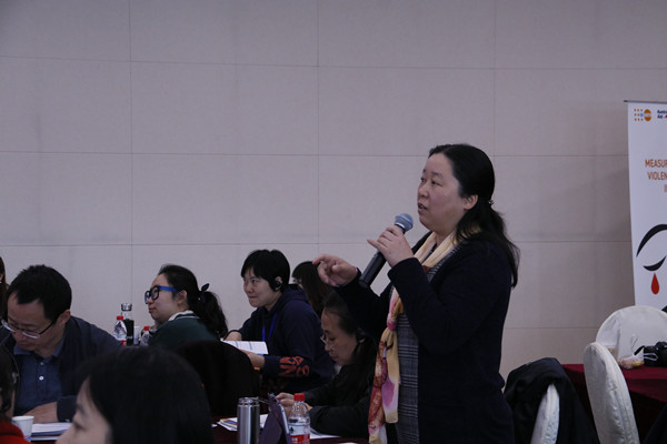 詹森博士的培訓圍繞以下內容展開:從聯合國層面與參會人員分享了“針對婦女的暴力”、“基于性別的暴力”、“家庭暴力”、“親密伴侶暴力”等概念的共性與差異,列舉了針對婦女的暴力類型以及常見的伴侶暴力類型,與參會人員共同探討了這些暴力類型在不同文化語境中的不同表達方式與表現形式;介紹了針對婦女暴力的數據來源,包括警方、法院、醫院等機構的記錄和基于人口的調查,并探討了不同來源數據的優缺點;以世界衛生組織婦女健康與家庭暴力多國專項調查為例詳細介紹了針對婦女暴力的調查類型,并強調調查中培訓的重要性;分享如何測量不同類型暴力的普遍性和頻率、暴力數據收集對婦女帶來的積極影響、調查過程中的倫理與風險考量以及如何更好地開發與解讀數據等議題。