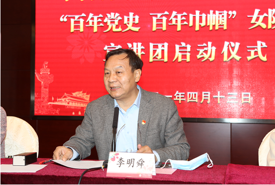 李明舜在講話中指出,組織百名師生開展“百年黨史百年巾幗”宣講活動(dòng),是學(xué)校貫徹落實(shí)黨中央《關(guān)于慶祝中國(guó)共產(chǎn)黨成立100周年組織開展“永遠(yuǎn)跟黨走”群眾性主題宣傳教育活動(dòng)的通知》要求的一項(xiàng)重要舉措。他對(duì)10支宣講團(tuán)隊(duì)的順利組建表示祝賀,希望參加宣講的110名師生承擔(dān)起百年黨史、百年婦運(yùn)史講述者、宣傳員、傳承人的光榮使命,成為學(xué)院黨史學(xué)習(xí)教育的一面面旗幟和一粒粒火種,影響、帶動(dòng)更多的師生自覺學(xué)習(xí)中國(guó)共產(chǎn)黨的百年奮斗史,領(lǐng)悟習(xí)近平新時(shí)代中國(guó)特色社會(huì)主義思想的豐富內(nèi)涵,用馬克思主義婦女理論的最新成果、習(xí)近平總書記關(guān)于婦女和婦女工作的重要論述武裝頭腦、指導(dǎo)實(shí)踐。