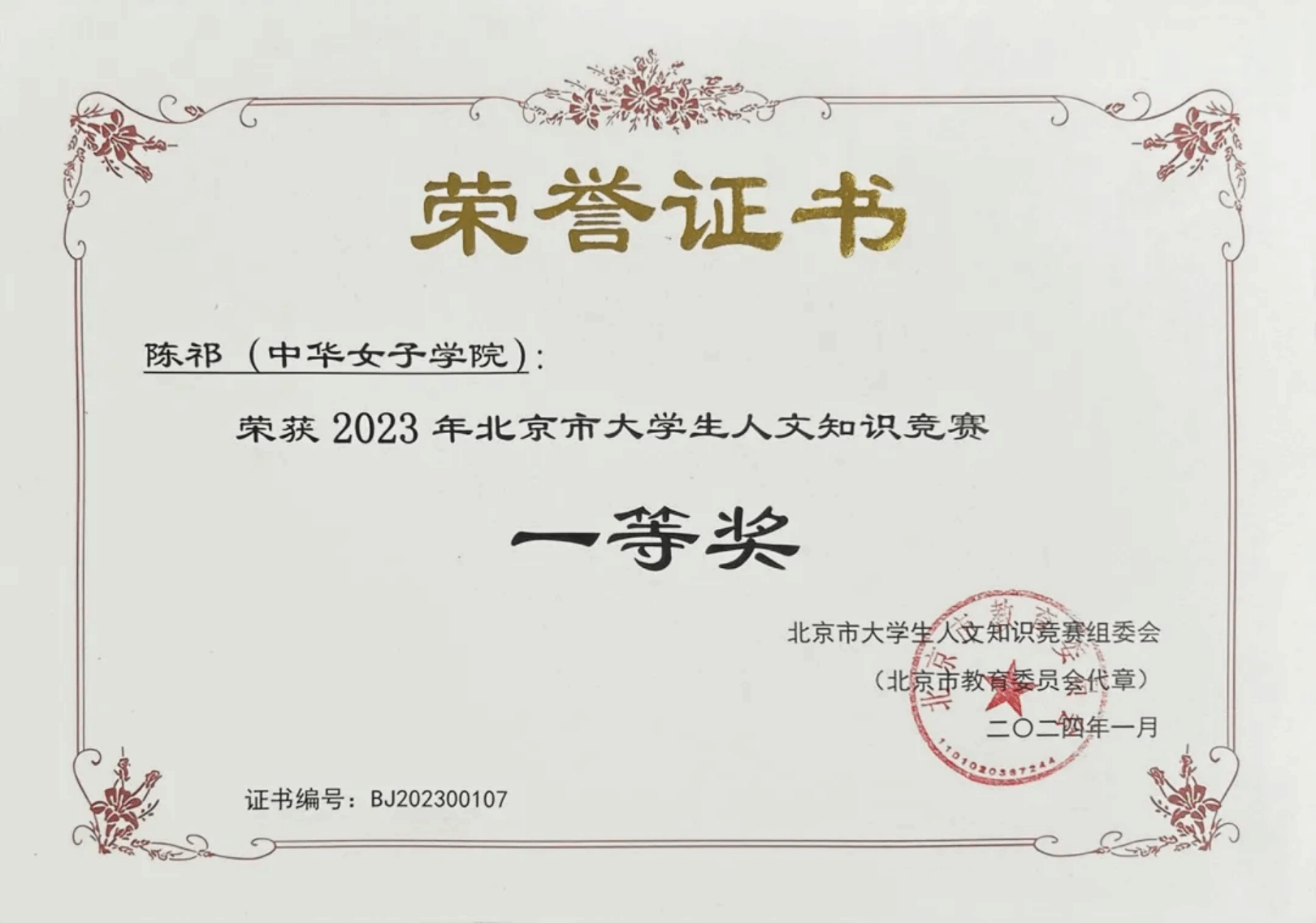 近日,2023年北京市大學生人文知識競賽獲獎名單公布,我校共14名同學獲得獎項,1名同學榮獲北京市一等獎,4名同學榮獲二等獎,8名同學獲三等獎,另有1名同學獲得“視頻單項獎”,這些喜人成績不僅展示了女院學子的人文素養與精神面貌,同時也彰顯了學校在立德樹人、人文教育方面的實踐成果。