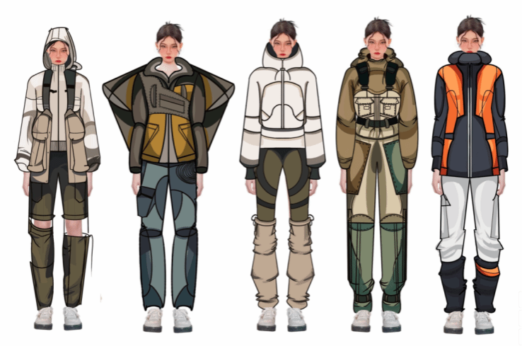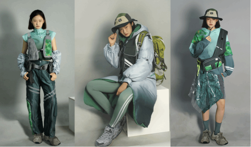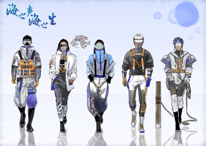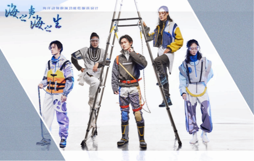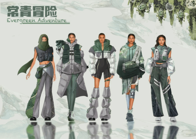 第一屆“千禧”杯服裝設計大賽銀獎作品《景邁想象——景邁山科考隊員工作服裝系列設計》,設計師郝澤宇
