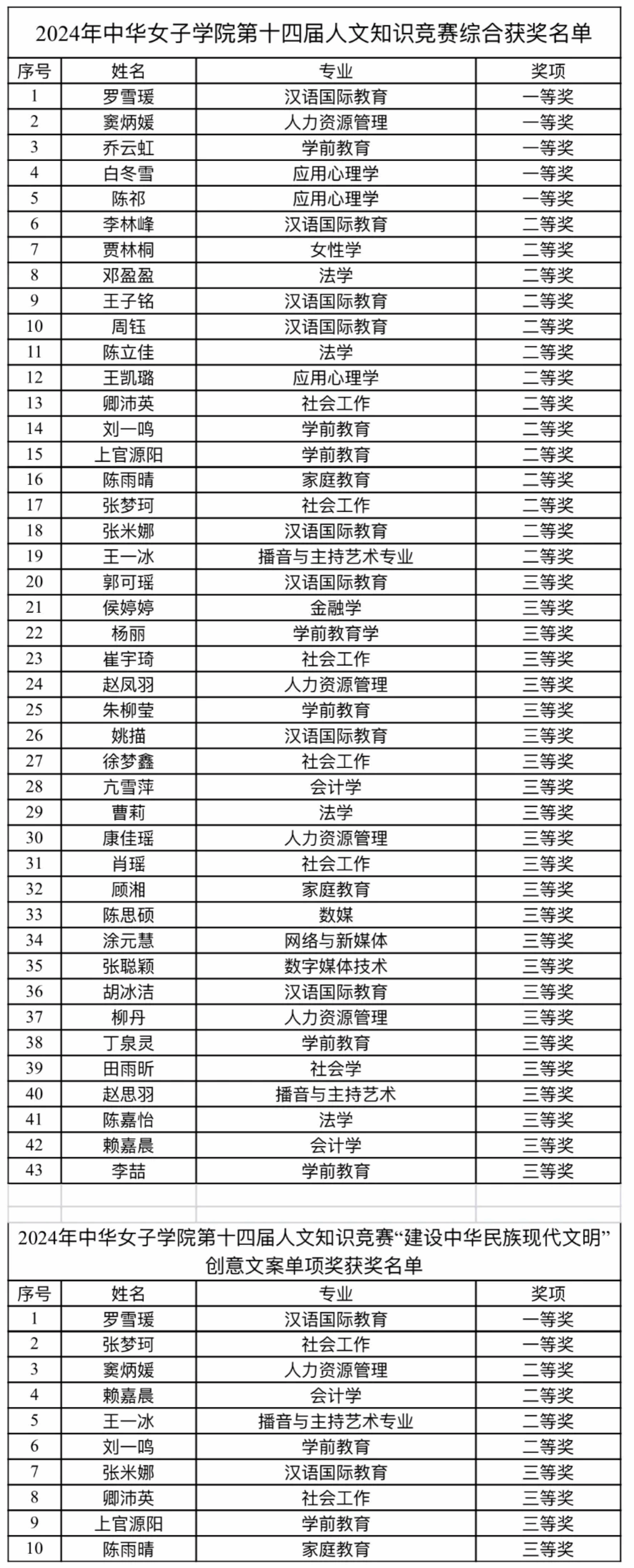2024年中華女子學院第十四屆人文知識競賽獲獎名單