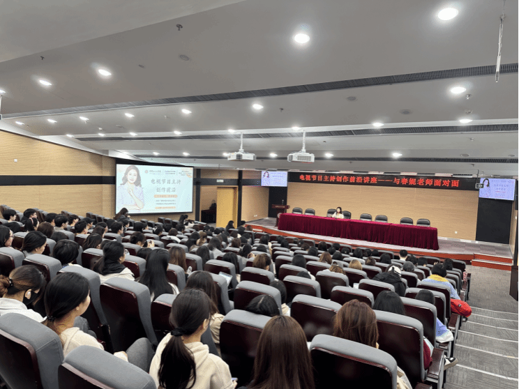 我校播音與主持藝術(shù)專業(yè)為進一步推進國家級一流本科專業(yè)建設(shè),推動師生對專業(yè)實踐前沿的探索,11月1日下午,特邀北京廣播電視臺著名主持人徐春妮老師在教圖樓一樓報告廳舉辦主題為“電視節(jié)目主持創(chuàng)作前沿”的精彩講座。此次講座圍繞新媒體與傳統(tǒng)媒體的融合發(fā)展態(tài)勢、主持人核心職業(yè)素養(yǎng)展開,是文化傳播與藝術(shù)學(xué)院文化藝術(shù)名家講堂系列之一。講座給學(xué)生們在專業(yè)發(fā)展的新方向和行業(yè)前沿上提供了寶貴經(jīng)驗。播音與主持藝術(shù)、網(wǎng)絡(luò)與新媒體及其他各專業(yè)學(xué)生共同聆聽了講座。