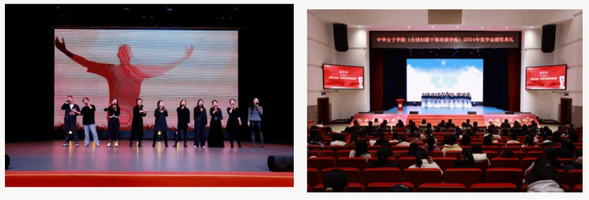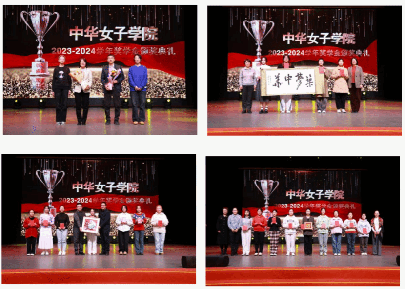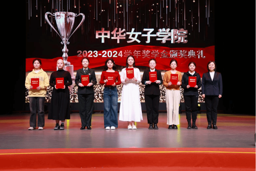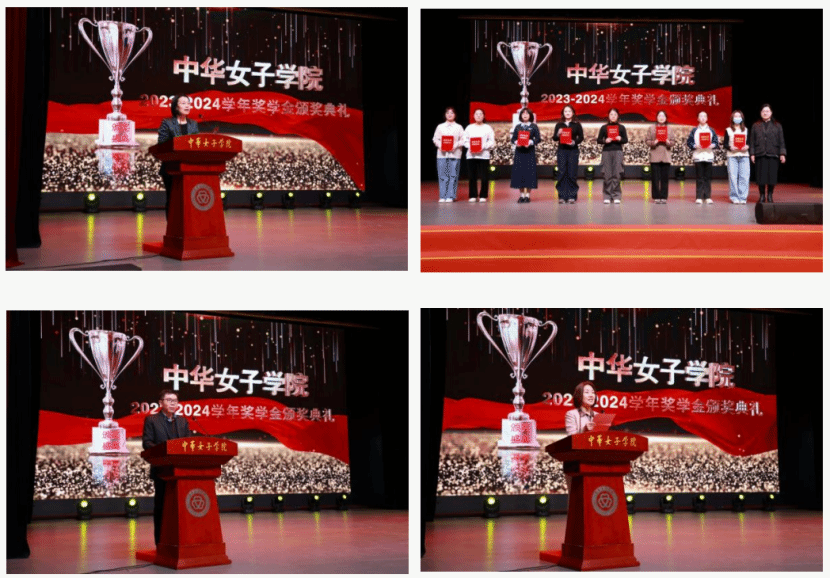 典禮在優美的樂曲中拉開帷幕,趙浩、薛小麗、周應江、韓燕、李瑩、張霞、葉水平分別為獲得中華女子學院2023—2024學年國家獎學金、國家勵志獎學金、國家助學金、社會助學金、校級獎學金、育慧書院獎學金、三好學生、優秀班干部及優秀班集體的個人和集體頒獎。