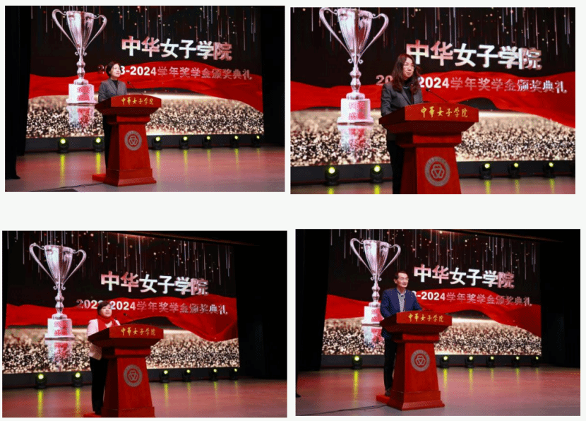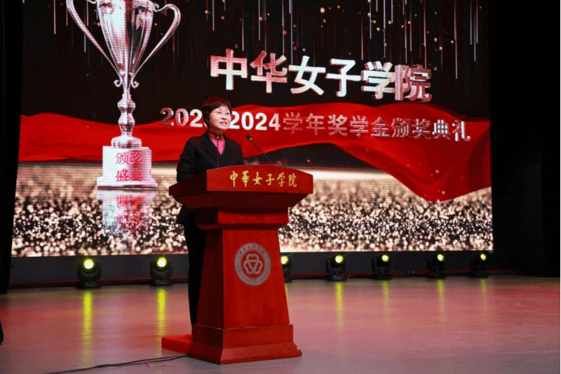 2024年12月24日,中華女子學院隆重舉行2023-2024學年獎學金頒獎典禮。學校黨委書記劉亞玫、院長劉利群、黨委副書記趙浩、副院長薛小麗、周應江、韓燕、李瑩,黨委常委、組織部長張霞,黨委常委、宣傳部長葉水平出席典禮。應學校邀請,中國兒童少年基金會公共傳播部部長張河峰、中國婦女發展基金會發展研究辦主任靳世花;朝陽區方舟社工發展中心主任徐胤、北京攖寧雅茗文化發展有限公司董事長許偉等參加典禮,與600余名師生代表共同見證學生的榮耀時刻。典禮由黨委副書記兼紀委書記邢慧麗主持。