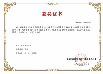 北京市教育委員會、北京市語言文字工作委員會近日下發(fā)通知,公布了2024年北京市中華經(jīng)典誦讀工程系列活動暨第六屆中華經(jīng)典誦寫講北京市初賽評選結果,播音與主持藝術專業(yè)發(fā)揮專業(yè)優(yōu)勢,共選送教師組作品4項,大學生組作品38項。