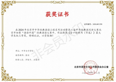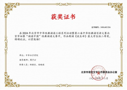 北京市中華經(jīng)典誦讀工程系列活動是中華經(jīng)典誦讀工程系列活動的重要組成部分。中華經(jīng)典誦讀工程是為深入貫徹習近平新時代中國特色社會主義思想和黨的十九大精神,落實中共中央辦公廳、國務院辦公廳印發(fā)的《關于實施中華優(yōu)秀傳統(tǒng)文化傳承發(fā)展工程的意見》,學習貫徹全國教育大會精神,切實發(fā)揮語言文字在傳承發(fā)展中華優(yōu)秀傳統(tǒng)文化、革命文化和社會主義先進文化中的重要作用,教育部、國家語委開展的活動。它也是《中華優(yōu)秀傳統(tǒng)文化傳承發(fā)展工程“十四五”重點項目規(guī)劃》中的項目。2019年開始舉辦,至今第六屆。播音與主持藝術專業(yè)屆屆參加,年年獲獎。六年以來,共獲獎近60項,年均獲獎近10項,其中獲獎師生獲全國總決賽一等獎1次、全國優(yōu)秀指導教師1次、全國總決賽三等獎2次、北京市一等獎6次。這既彰顯了我校播音與主持藝術專業(yè)國家級一流本科專業(yè)的專業(yè)人才培養(yǎng)實力,也充分體現(xiàn)了播音專業(yè)以中華優(yōu)秀傳統(tǒng)文化、革命文化、社會主義先進文化涵養(yǎng)青年學子的育人育德方面新作為、新成績。