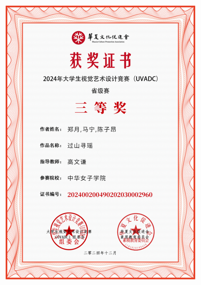 近日,由華夏文化促進(jìn)會主辦的2024大學(xué)生視覺藝術(shù)設(shè)計(jì)競賽(UVADC)全國總決賽圓滿落幕。本屆賽事以“賡續(xù)文脈·創(chuàng)見未來”為主題,吸引了全國300余所高校的近萬件作品參與角逐,涵蓋數(shù)字媒體、動態(tài)視覺、影像藝術(shù)等多元領(lǐng)域。我校文化傳播與藝術(shù)學(xué)院視覺傳達(dá)設(shè)計(jì)專業(yè)學(xué)生表現(xiàn)出色,斬獲全國二等獎(jiǎng)1項(xiàng)、省級一等獎(jiǎng)1項(xiàng)、省級三等獎(jiǎng)4項(xiàng)、優(yōu)秀獎(jiǎng)2項(xiàng),充分彰顯了學(xué)院在文化傳承創(chuàng)新與新時(shí)代人才培養(yǎng)方面的顯著成效。