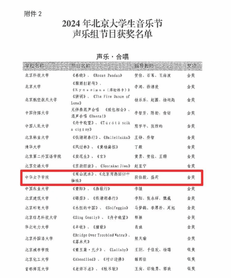 北京市教委近期公布了2024年北京大學生音樂節(jié)評審結(jié)果。我校選送的女生合唱原創(chuàng)作品《高山流水》《北京雨燕回歸中軸線》在首都高校選送的上百件作品中脫穎而出,最終榮獲聲樂組金獎。詞曲作者、指導教師段伯毅老師一舉獲得“優(yōu)秀指揮”、“優(yōu)秀創(chuàng)作”、“優(yōu)秀指導教師”等多個獎項。