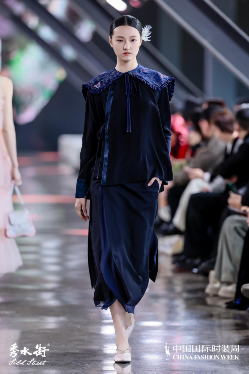 很榮幸能夠參加本次中國國際時裝周,感謝學校提供的寶貴機會。這是我第一次參加中國國際時裝周,是一次令人難忘的初體驗,它不僅展現了當代中國時尚產業的蓬勃發展和活力,更讓我深刻理解到了藝術與設計文化的碰撞。對于我而言,它不僅是服裝的展示,也是對我作為模特這個職業的鍛煉。認為每次走秀都是全新體驗,能感受到不同秀場的獨特時尚魅力,希望我能在接下來的時裝周中有機會展示更多的服裝。