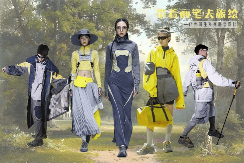 在以“華”韻新章,“峰”尚領(lǐng)航為主題的第二屆“千禧”杯服裝設(shè)計大賽中,邵馨巧(作品《荒野之韻》)、綦若涵(作品《漠野靈蹤》)、鄺藝琳(作品《怡然聽風》、錢李歡(作品《領(lǐng)風》)四位同學的作品成功入圍決賽。她們聚焦科技感與時代性,運用創(chuàng)新纖維材料,對運動功能進行了前沿表達,展現(xiàn)了新一代設(shè)計師的活力與潛力。