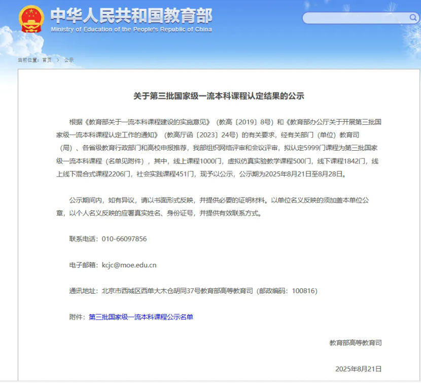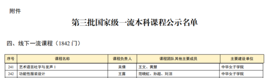 8月21日,教育部正式公示第三批國家級一流本科課程認定結果,我校《藝術語言吐字與發聲1》《功能性服裝設計》2門課程獲評線下一流課程,實現了我校在該類別國家級一流課程“零的突破”。
