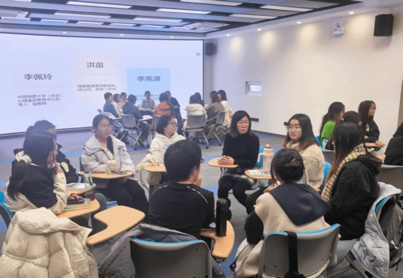 以情境的方式打開心扉,聚焦于成為你自己。三位來自不同領域的專家分別從企業身份、心理健康、讀書滋養等多角度結合《與女科學家面對面:成為你自己》《我們仨》兩本推薦書目進行主旨分享。國家能源集團高級工程師洪苗,從一名科技人員的職場視角講述了人生“配比”的規劃策略;中國地質大學(北京)心理素質教育中心負責人李佩玲副教授,從心理調適角度解析成長中的情緒與認知管理;我校兒童發展與教育學院青年教師、碩士生導師李英源,從教育和自身閱讀實踐中啟發學生思考自我成長路徑。專家們的精彩分享贏得了陣陣掌聲。同學們和專家就人生規劃、心理調適、學業發展等問題面對面交流,積極互動、真誠碰撞、敞開心扉,在書中找到答案、在情境中觸動內心、在一問一答中悅動成長。