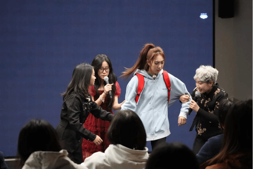 活動從心理情景劇《誰說女孩就得這樣》拉開序幕。該劇由我校學生自編自演,生動展現了當代大學生在成長過程中面臨的“傳統女性、女戰士、完美女人等”不同身份和角色的困惑,引發了在場同學的強烈共鳴。圍繞劇情內容,專家和同學們共同組成小組討論,有的同學對自己母親在家庭中承擔的角色有了理解和覺察,有的同學從“選擇與選擇的自由”這一角度強調了成長過程中的能動性,還有的同學真誠勇敢地分享自己的困惑困擾......