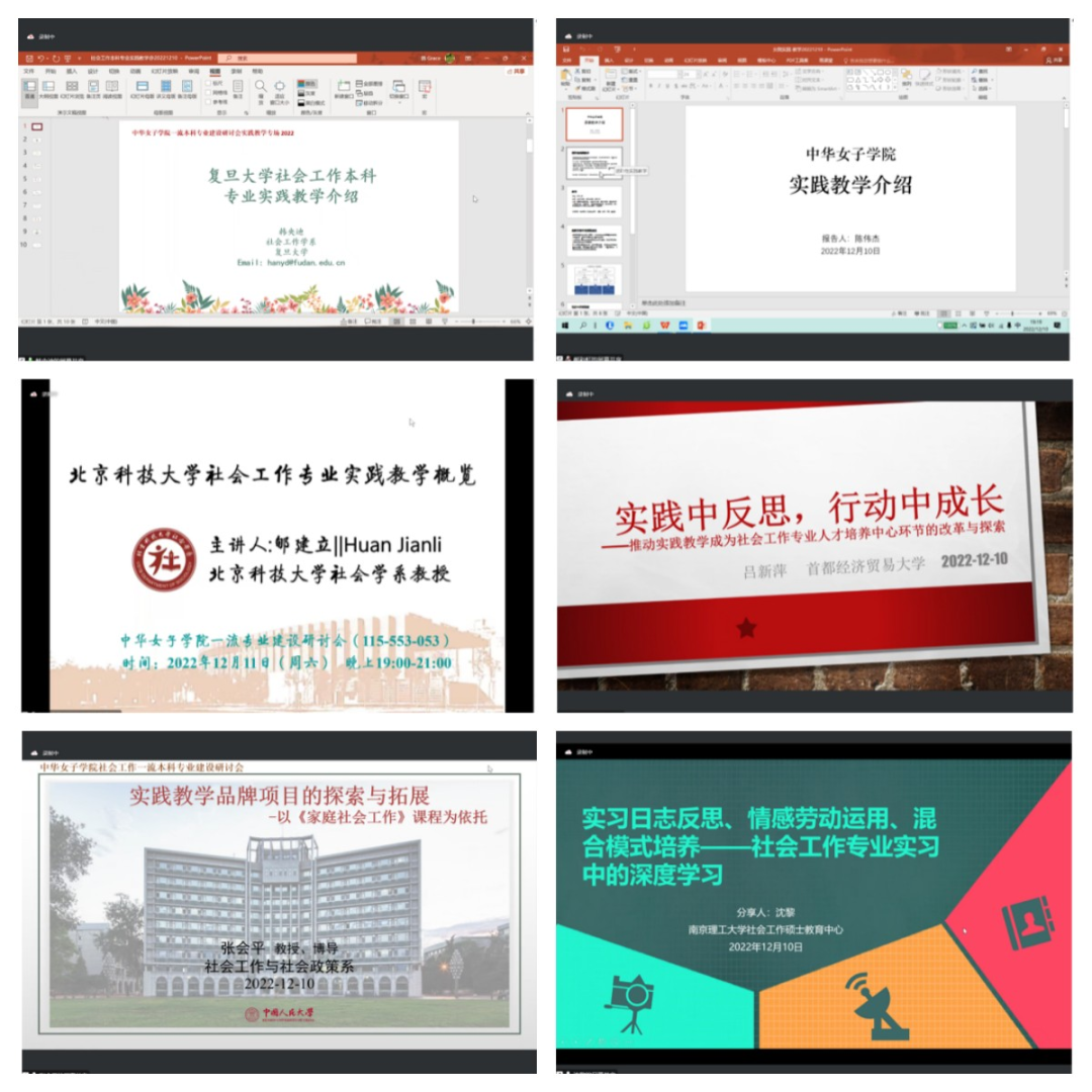 為了突出中華女子學院社會工作實踐教學特色,提升社會工作一流本科專業建設水平,2022年12月10日,社會工作學院召開了社會工作一流本科專業建設研討會實踐教學專場。出席此次研討會的專家有中國人民大學社會工作與社會政策系張會平教授、北京科技大學社會學系郇建立教授、首都經貿大學社會工作系呂新萍教授、南京理工大學社會學系沈黎教授、復旦大學社會工作學系韓央迪副教授。中華女子學院副院長周應江教授在會議上致辭,會議由社會工作學院院長李敏教授主持。