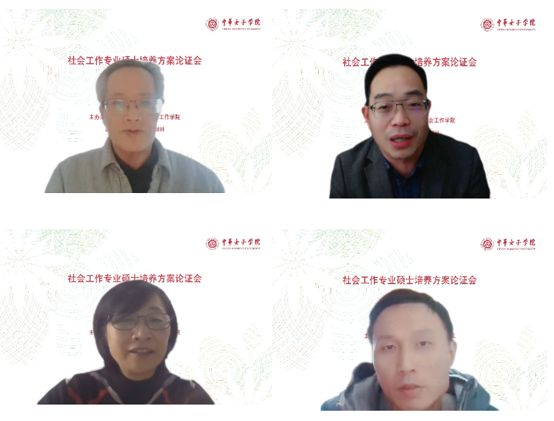 為結合新時期社會工作發展要求,提高我校社會工作專業辦學水平,改善專業與課程體系構架,提高人才專業知識素養和技術能力,社會工作學院于2022年12月28日下午召開了社會工作專業碩士培養方案論證會。出席此次論證會的專家有中國人民大學社會與人口學院馮仕政教授、廈門大學社會與人類學院童敏教授、武漢大學社會學院慈勤英教授、華中師范大學社會學院鄭廣懷教授。中華女子學院副院長周應江教授、社會工作學院院長李敏教授、管理學院院長侯典牧教授、社會工作學院研究生教研室主任李潔教授以及社會工作學院、管理學院、婦女發展學院、文化傳播與藝術學院的教師參加了會議。會議由中華女子學院副院長周應江教授致辭,社會工作學院院長李敏教授主持。