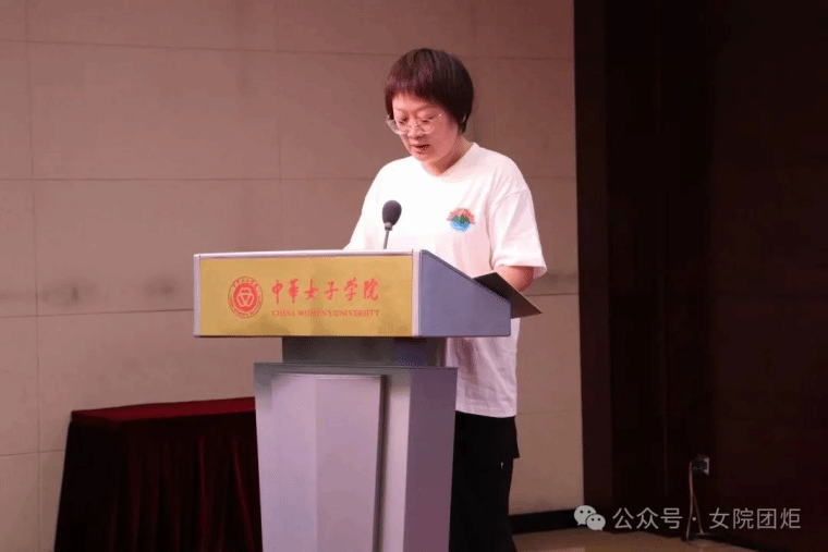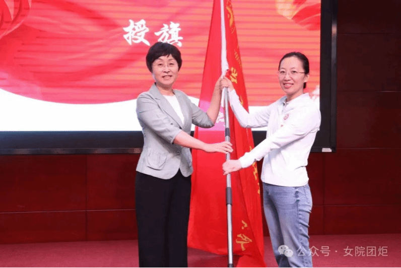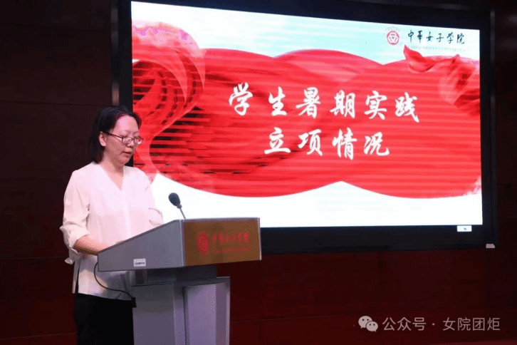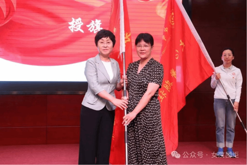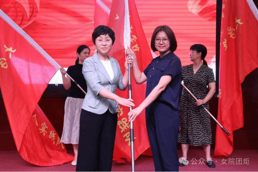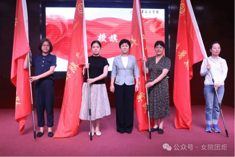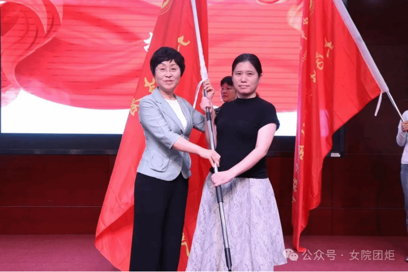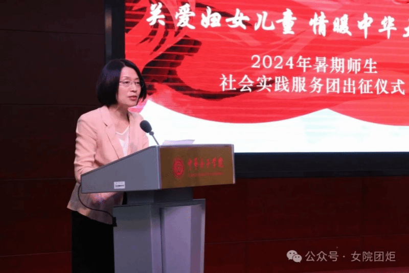劉亞玫代表學校黨委向各個暑期實踐團授旗,勉勵師生時刻牢記習近平總書記的殷殷囑托,響應時代召喚,堅持學以致用,帶著責任感、使命感投入到關愛婦女兒童社會實踐中去,把青春奉獻在黨和國家最需要的地方,用實際行動詮釋“請黨放心,強國有我”的青春誓言。
