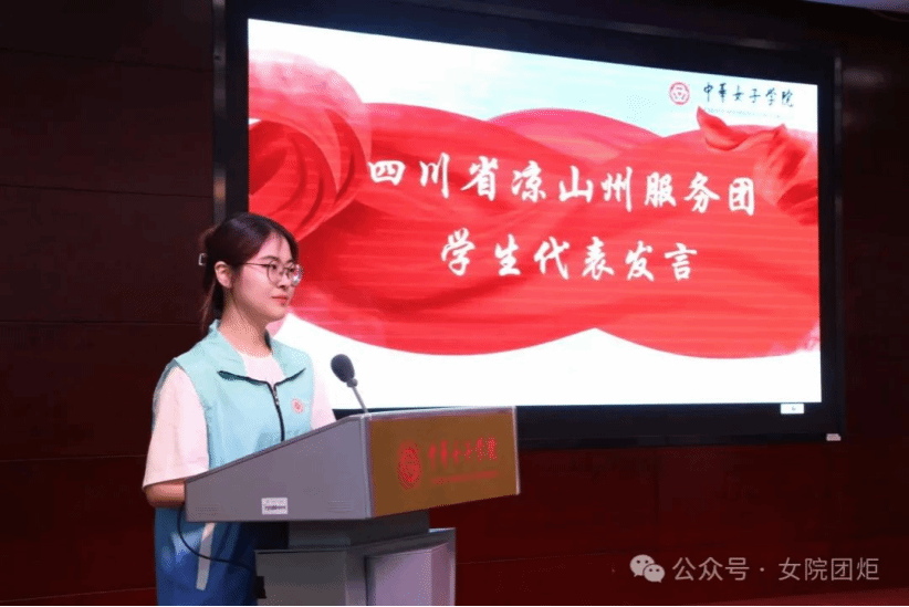 即將赴四川省涼山州開展“樹新風 促振興”婦女兒童關愛活動的國際教育學院學生常檬元,在發言中表達了完成此次實踐任務的熱情和決心。