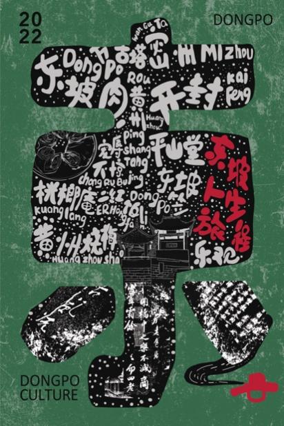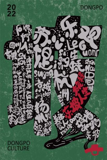 設計理念:作品以東坡二字為核心,運用拼貼的手法,闡述東坡人生旅程中的一些重大事件。通過挖掘北宋文豪蘇東坡在文學、藝術、生活態度、人生境界等方面的當代價值,利用設計語言傳達東坡文化的精神內涵,促進海南文旅產業高質量融合發展。