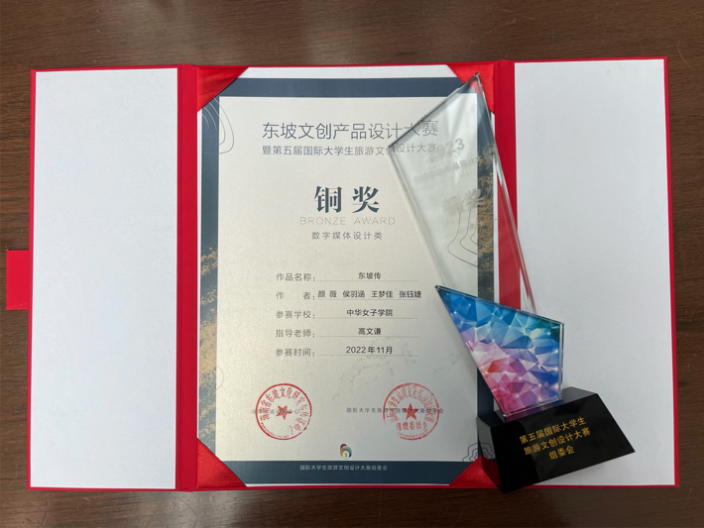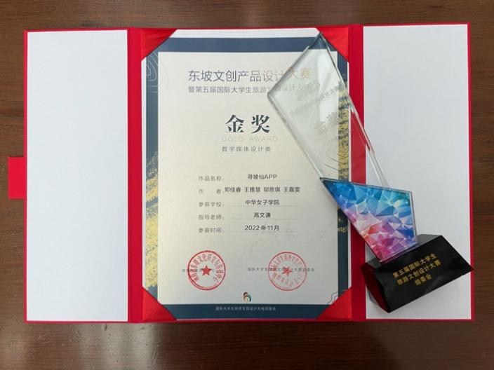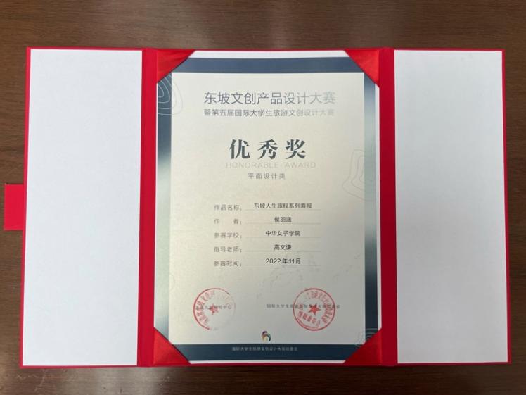 近日,我校文化傳播與藝術學院學生在“東坡文創產品設計大賽暨2022第五屆國際大學生旅游文創設計大賽”中斬獲多項佳績。本次大賽由海南省東坡文化研究與傳播中心、海南省旅游投資發展有限公司主辦,海南大學美術與設計學院承辦,評審團由國內設計界知名專家組成。經過科學嚴謹的初評、復評與終評環節,在眾多參賽優秀作品中,我校視覺傳達設計專業高文謙老師指導的學生作品《尋坡仙APP》榮獲大賽金獎、《東坡傳》榮獲銅獎,《東坡人生旅程系列海報》榮獲優秀獎;王文璐老師指導的學生作品《東坡志趣》、《東坡笠》榮獲“最佳網絡人氣獎TOP10”、優秀獎;高文謙老師獲評“優秀指導教師”。2月19日,大賽頒獎儀式及優秀作品展覽在海南省博物館舉行。