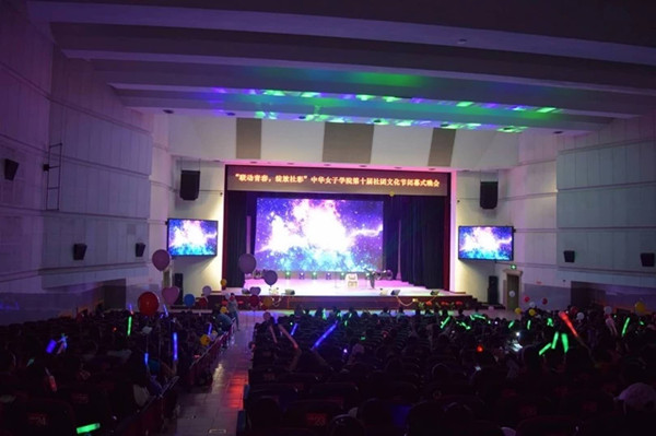 “十佳歌手”冠軍得主王麗帶來《阿刁》,天籟之音,余音繞梁;富有青春活力的健美操,詩、歌結(jié)合的創(chuàng)意朗誦,玉生煙中漢服社的窈窕風(fēng)韻,動漫社帶來的創(chuàng)意cosplay大秀和女子社團(tuán)帶來的華服秀,舞與手語的奇妙結(jié)合;而驚鴻舞更是一舞傾城,精彩的文化短劇表演,棋協(xié)、茶藝社、千羽弓社、書法社等都拿出看家本領(lǐng),展示了女院學(xué)子不一樣的風(fēng)采。華北電力大學(xué)的魔術(shù)、北京航空航天大學(xué)踢踏舞團(tuán)等外校嘉賓帶來的精彩演出,一次又一次將晚會推向高潮。