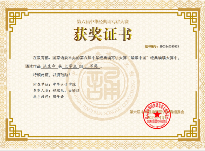 中華女子學(xué)院播音與主持藝術(shù)專業(yè)始終秉持“以文化人,以美育人”的教育理念,將中華優(yōu)秀傳統(tǒng)文化深度融入語言美育教學(xué)中,致力于培養(yǎng)兼具專業(yè)素養(yǎng)與文化情懷的新時(shí)代人才。通過經(jīng)典誦讀,師生們不僅錘煉了語言藝術(shù)表達(dá)能力,更在誦讀中觸摸中華文化的深厚底蘊(yùn),汲取精神力量,培育文化自信與家國情懷。此次成績的取得,是師生齊心協(xié)力、教學(xué)相長的生動(dòng)體現(xiàn),更是我校持續(xù)推動(dòng)文化育人、立德樹人使命的有力詮釋。