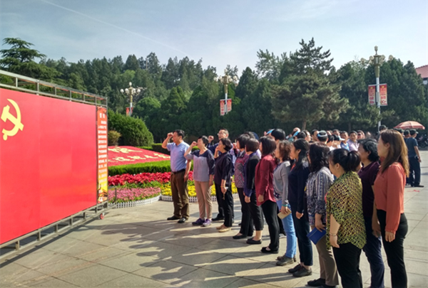 12日上午,懷著崇敬的心情集體參觀了西柏坡紀念館、西柏坡中共中央舊址、七屆二中全會舊址,參觀了毛澤東、朱德、劉少奇、周恩來、任弼時等老一輩革命家和開國元勛的舊居,在偉人工作和生活過的地方深刻領會和感悟西柏坡精神。在西柏坡紀念館外,全體學員面向黨旗舉起右手,重溫入黨時的莊嚴承諾。