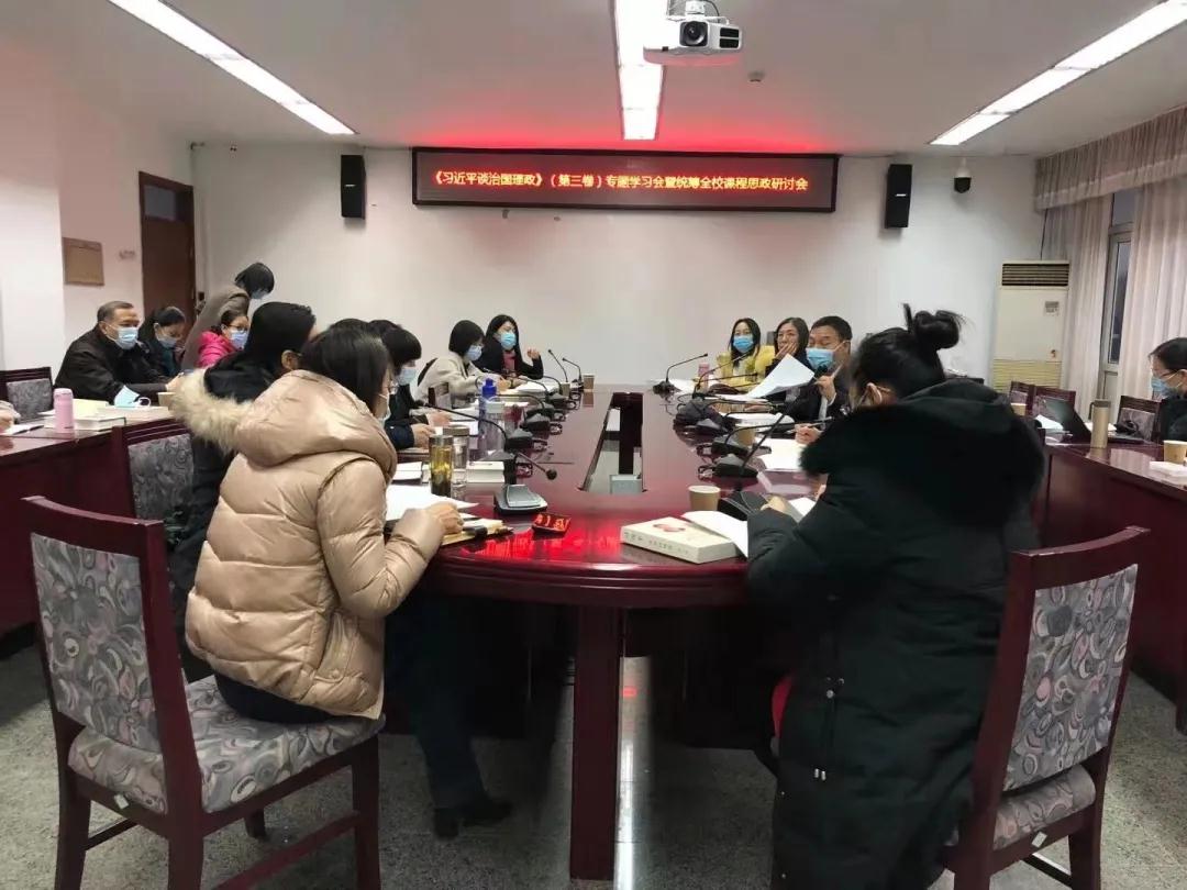 為了深入學習習近平新時代中國特色社會主義思想,特別是習近平法治思想,加強立德樹人,推進全校思政課程和課程思政同向同行,2020年12月24日思政部聯合法學院召開《習近平談治國理政》(第三卷)專題學習會暨統籌全校課程思政研討會。學校黨委書記李明舜、副院長周應江出席會議。
