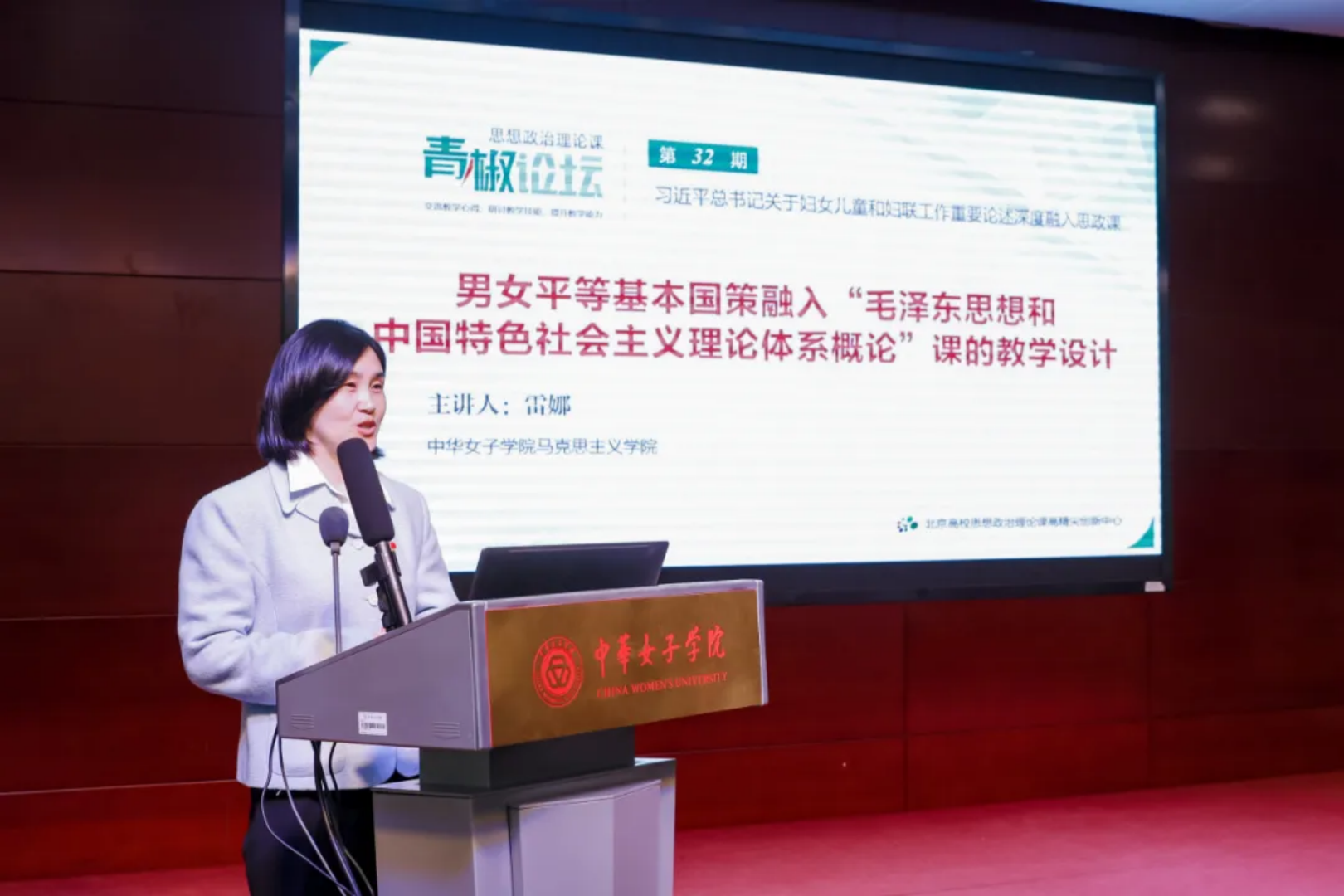 第十二屆北京高校思想政治理論課教學(xué)基本功比賽一等獎(jiǎng)獲得者、中華女子學(xué)院馬克思主義學(xué)院雷娜老師通過圍繞“為什么融”、“融什么”、“怎么融”展示了將男女平等基本國策融入“毛澤東思想和中國特色社會(huì)主義理論體系概論”課的教學(xué)設(shè)計(jì)。