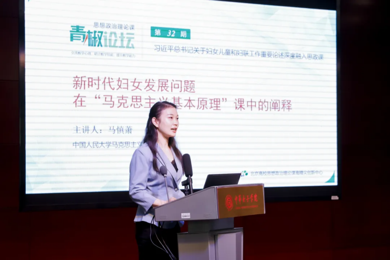 思想政治理論課青椒論壇是北京高校思想政治理論課高精尖創(chuàng)新中心和中國人民大學(xué)馬克思主義學(xué)院共同創(chuàng)立的高端品牌,已成功舉辦31期。本次論壇主題鮮明、內(nèi)容前沿、專家云集,對(duì)于將習(xí)近平總書記關(guān)于婦女兒童和婦聯(lián)工作重要論述深度融入思政課,引導(dǎo)廣大師生為強(qiáng)國建設(shè)、民族復(fù)興偉業(yè)貢獻(xiàn)巾幗智慧和力量具有重要意義。