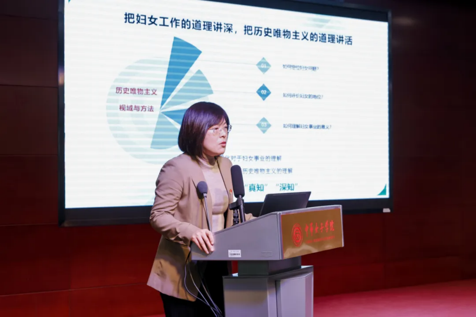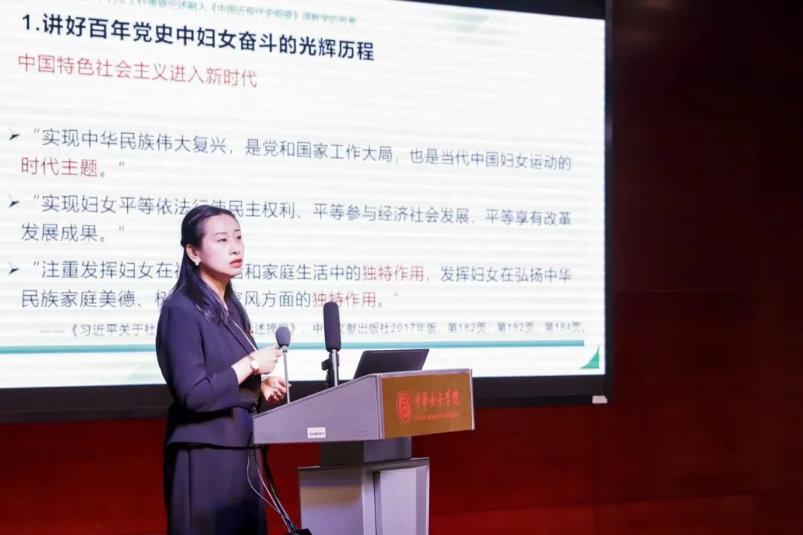 中國婦女十三大代表、教育部青年長江學(xué)者、華東師范大學(xué)馬克思主義學(xué)院閆芳潔教授展示了如何將習(xí)近平總書記關(guān)于婦女工作重要論述深度融入唯物史觀專題的教學(xué)設(shè)計(jì)。