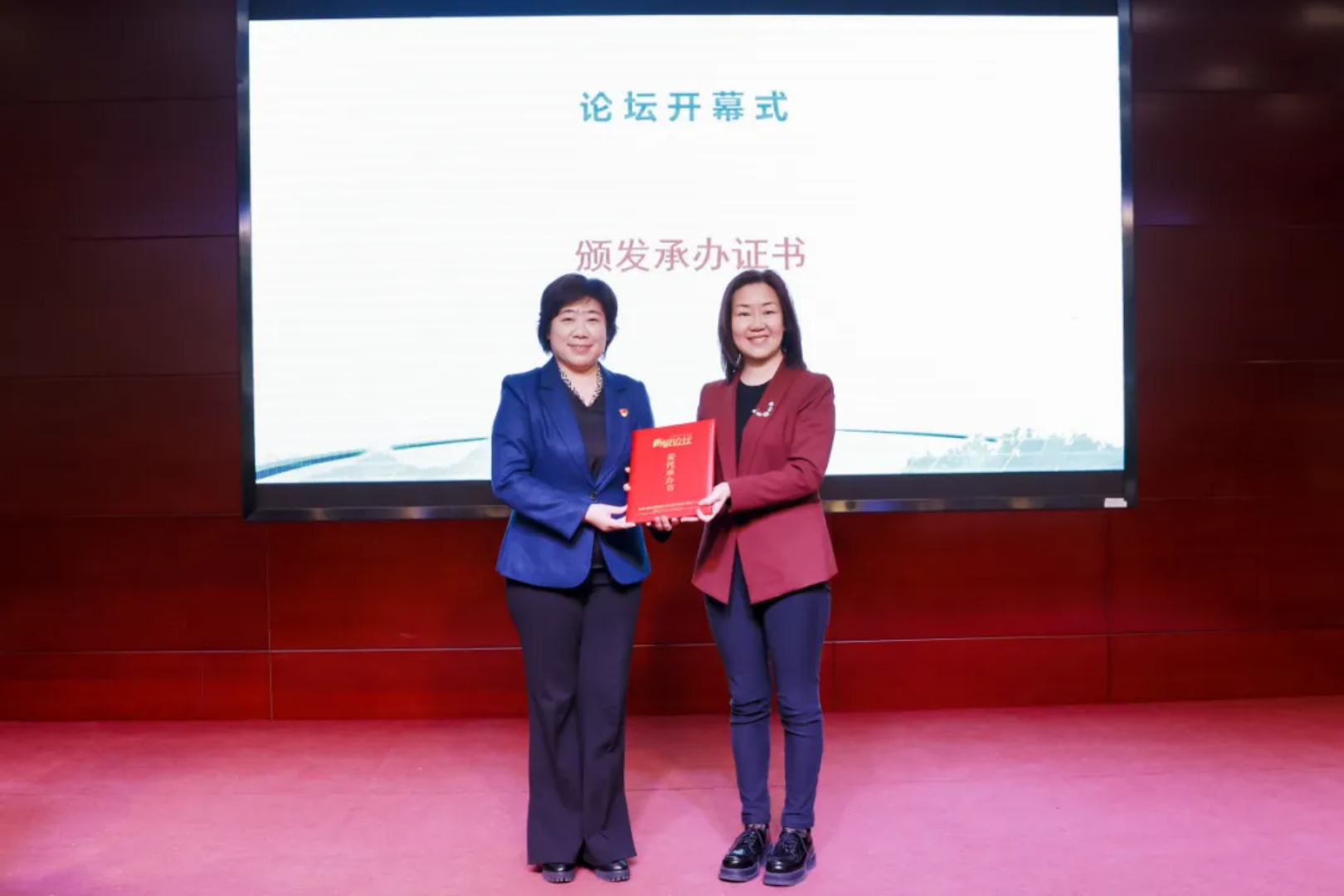 接下來,中國人民大學(xué)黨委常委、副校長王易為中華女子學(xué)院頒發(fā)本次論壇的承辦證書,中華女子學(xué)院副院長韓燕接受證書。
