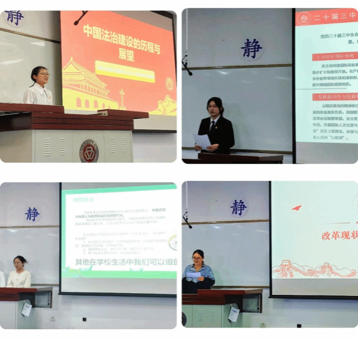 微黨課分別由學生黨支部第一至第四黨小組的代表承擔,學生們先后以“法治保障下的中國式現代化:黨的二十屆三中全會后的法治建設新方向”、“文化自信與傳承:黨的二十屆三中全會后中華文化的創新發展之路”、“深化改革的路徑與策略:探索黨的二十屆三中全會后的新篇章”和“綠色發展與生態文明建設:黨的二十屆三中全會后的可持續發展戰略”為題分享了學習體會。講解人準備充分、內容充實,娓娓道來;聽課者認真聽講并積極參與互動。微黨課取得預期效果。