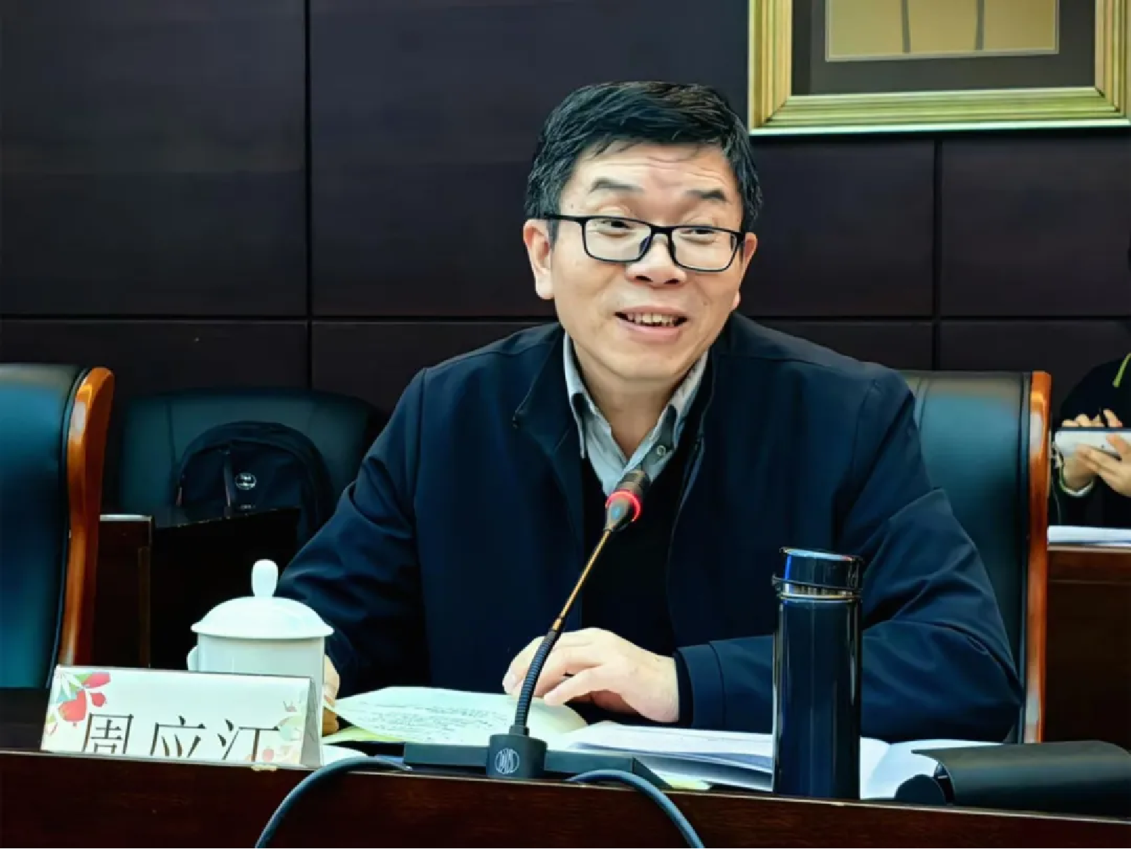 清華大學(xué)馬克思主義學(xué)院博士生導(dǎo)師鄒廣文教授以“‘第二個(gè)結(jié)合’與中國式現(xiàn)代化”為主題展開報(bào)告,從“第二個(gè)結(jié)合”提出的時(shí)代背景、“第二個(gè)結(jié)合”是中國式現(xiàn)代化的方法論、人類現(xiàn)代性理論的“理想之維”三個(gè)層面進(jìn)行分享,表示推進(jìn)中國式現(xiàn)代化的過程中要充分運(yùn)用中華優(yōu)秀傳統(tǒng)文化的寶貴資源,探索面向未來中國發(fā)展實(shí)踐的理論創(chuàng)新和制度創(chuàng)新,使老師們受益匪淺。本環(huán)節(jié)由科研處(學(xué)報(bào)編輯部)處長臧海群主持。