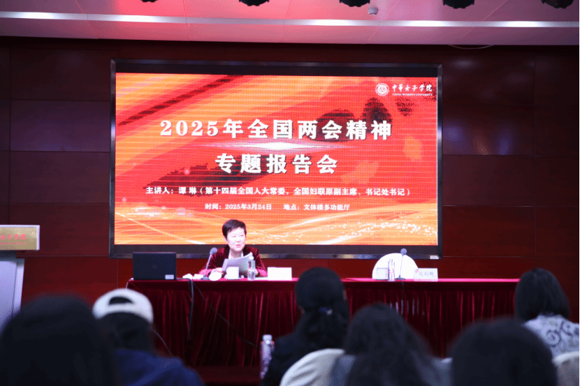 3月24日上午,學(xué)校在文體樓多功能廳舉辦2025年全國兩會精神專題報告會,第十四屆全國人大常委會委員,全國婦聯(lián)原副主席、書記處書記譚琳同志應(yīng)邀作專題報告。學(xué)校黨委副書記、院長劉利群主持報告會。