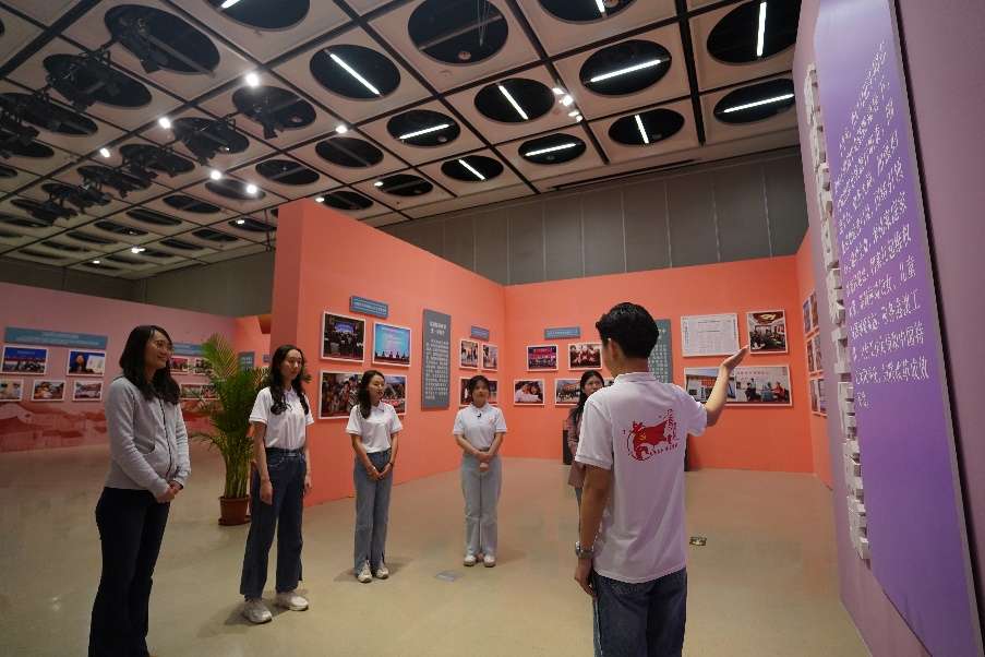 “在黨的十八大報告、十九大報告和二十大報告中,都明確提出,堅持男女平等基本國策,保障婦女兒童合法權益。黨中央的系列決策部署,為婦女兒童事業的發展開辟了廣闊道路。”學生講解員朱悅娓娓道來,讓師生們聽得津津有味。