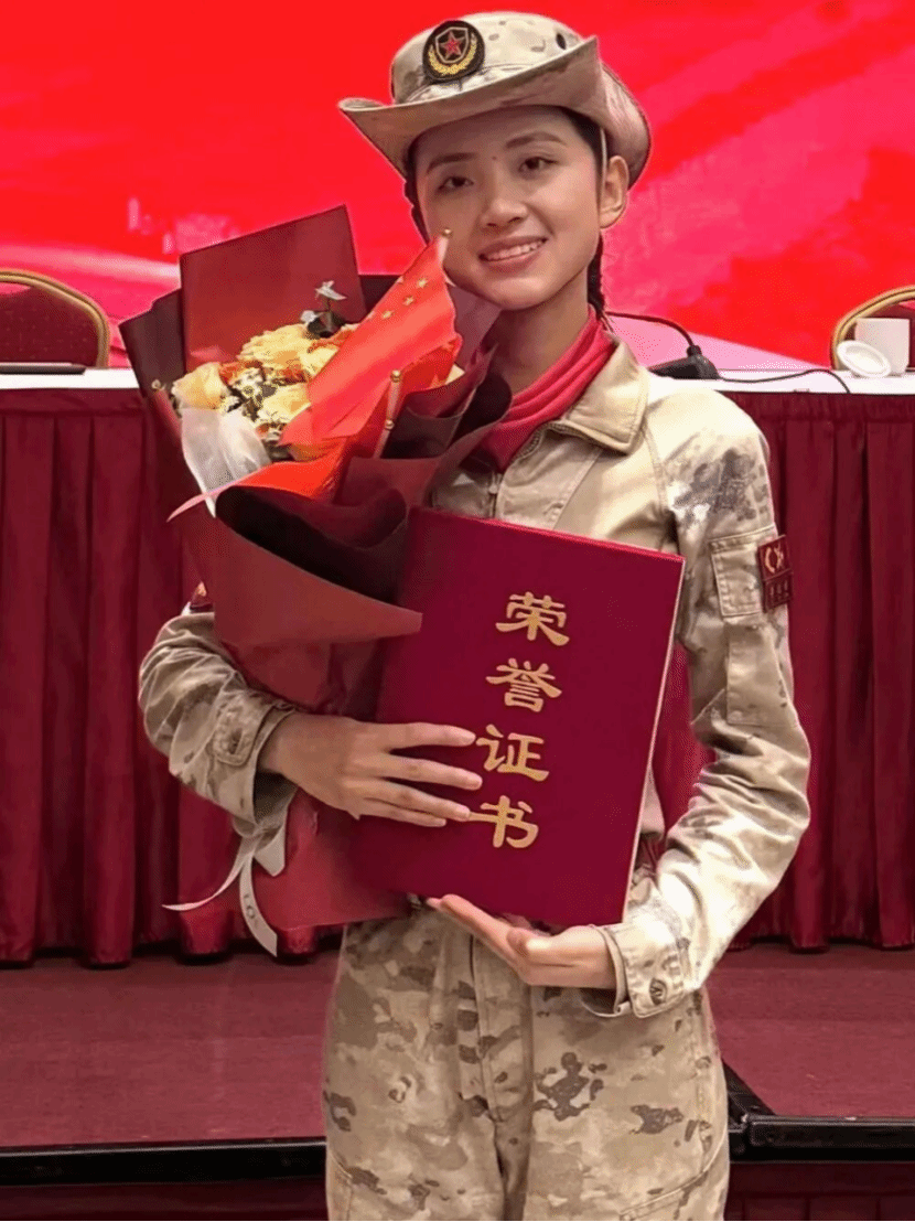 田子凡2019年參加完國慶70周年閱兵后,便立即參軍入伍,成為了一名火箭軍戰士。退伍后復學,她成為了中華女子學院2024屆管理學院畢業生。