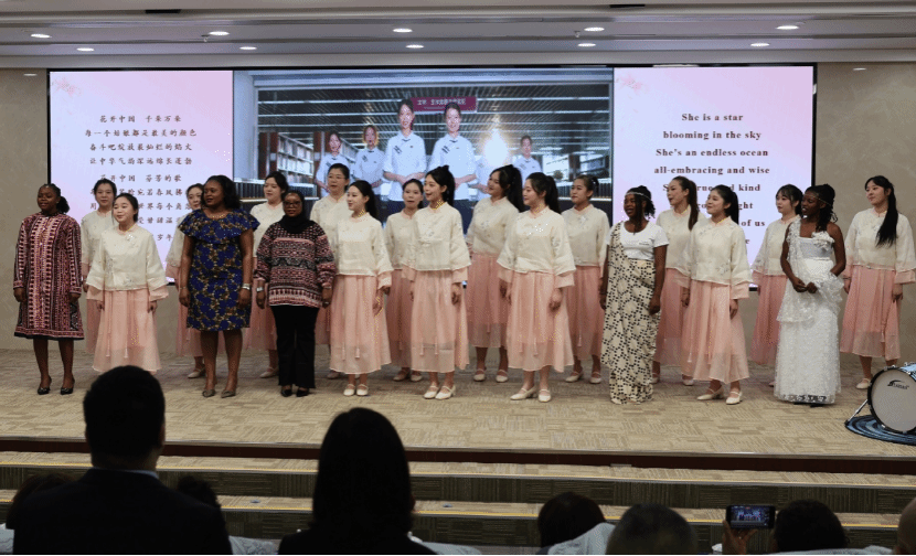 中華女子學院中外學生演唱主題歌曲《花開中國》。中國日報記者 王壯飛 攝