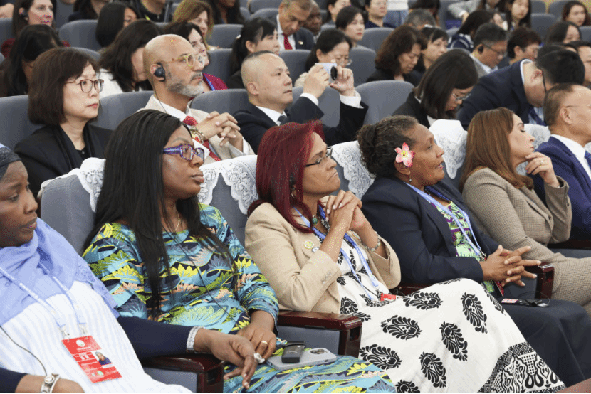 ↑ 10月14日,與會嘉賓在“全球婦女能力建設中心”揭牌儀式上聆聽發言。
