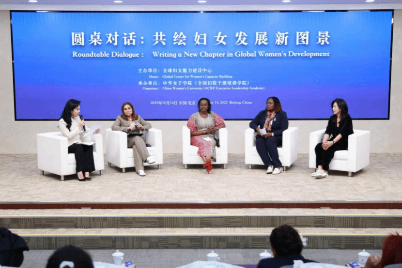 揭牌儀式后,以“共繪婦女發展新圖景”為主題的圓桌對話接續舉行??夏醽?、多米尼加、尼日利亞等國代表與中國專家圍繞峰會成果落地、國際合作案例、文明倡議與性別平等、女性能力建設等議題展開討論。對話聚焦如何將峰會共識轉化為具體行動,例如通過數字技術賦能、本土化項目推廣及跨境經濟合作加速婦女全面發展。