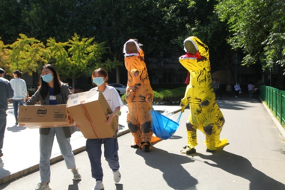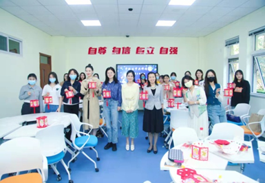 文化傳播學院師生一起制作點亮中秋節(jié)的花燈。
