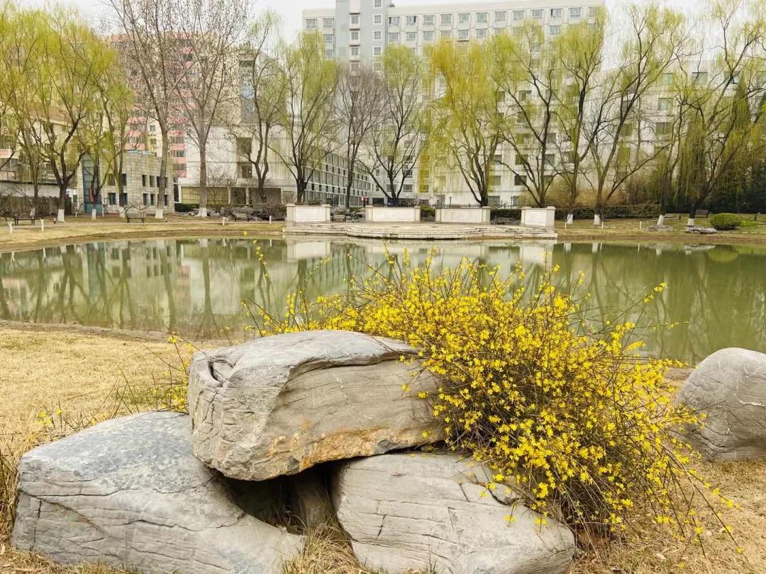 去年十二月份,因為疫情影響,師生陸續離開校園。特殊時期,停課不停教,停課不停學,在家做好隔離并堅持學習工作,是為社會做出的貢獻。闊別三個月的校園,而今湖面水波蕩漾,金魚戲謔暢游;岸邊楊柳依依,路旁迎春綻放。干凈整潔、春意盎然的校園,正在靜候老師和同學們的平安歸來!