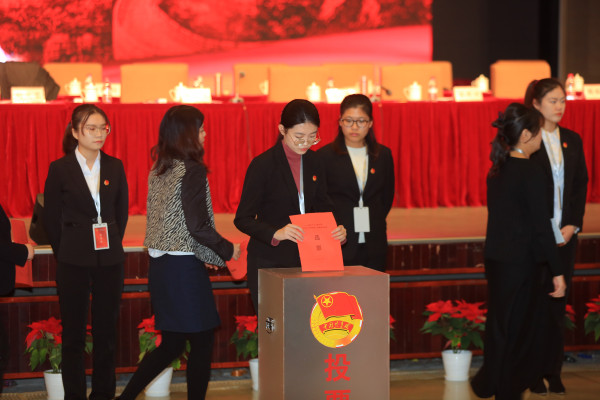 12月22日下午,共青團中華女子學院第三次代表大會選舉大會以及大會閉幕式在學校禮堂召開。選舉大會上審議通過了大會選舉辦法,通過了總監票人、監票人名單,并宣布了計票人、總計票人名單。大會按照選舉程序,在總監票人段雅文同志的主持下以無記名投票的方式進行選舉。