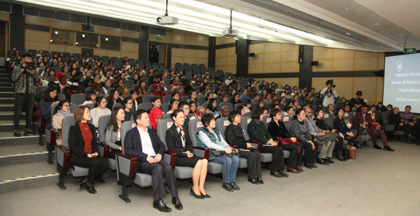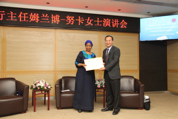 12月14日下午,聯合國副秘書長、婦女署執行主任姆蘭博-努卡女士在我校一層報告廳發表演講并受聘為中華女子學院榮譽教授。努卡女士在演講中高度贊揚習近平主席和中國政府對全球婦女發展的重視和支持,高度評價中國婦女發展成就和中國婦女發展經驗以及學校致力于推動女性教育、維護婦女權益和服務婦女發展等方面的重大貢獻。