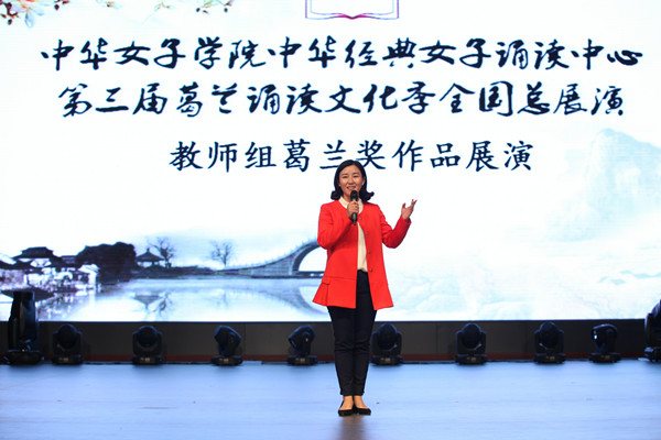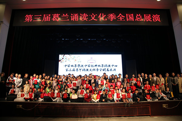 當天上午,“第三屆葛蘭誦讀文化季”總展演活動在中華女子學院10個分會場同時舉行。來自全國各地22個省市自治區(qū)的600名代表,分別按小學組、初中組、高中組、大學組及教師組、山區(qū)組、網(wǎng)絡(luò)組進行展演活動。他們“以語言承自信、以經(jīng)典鑄國魂”,將課本上古典詩詞名篇佳作的藝術(shù)魅力體現(xiàn)得淋漓盡致,現(xiàn)場的評委及觀眾深受感染。