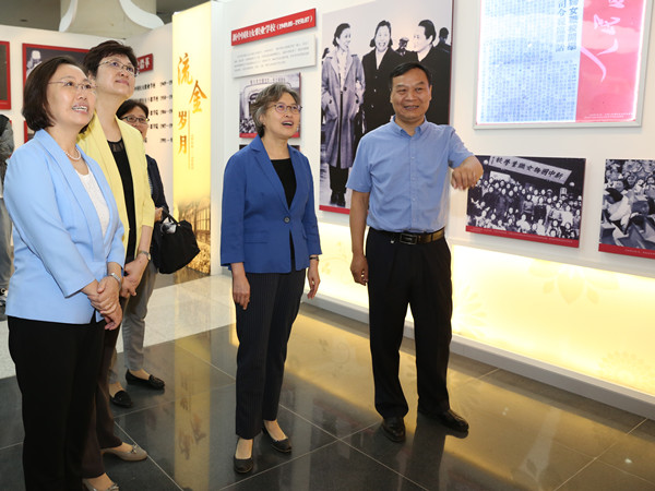 在校史館,學生志愿者向黃曉薇介紹了學校的發展歷程,在詳細了解學校的辦學歷史后,她指出,廣大婦女干部要學習老一輩婦女運動領袖深入基層、艱苦奮斗的精神。黃曉薇對中華女子學院為培養知性高雅的新時代女大學生所做出的貢獻給予肯定。她強調,要充分挖掘特色資源,在參與社會志愿服務活動等方面打出響亮品牌,發出新時代女院強音。