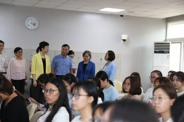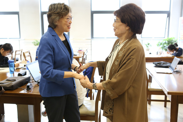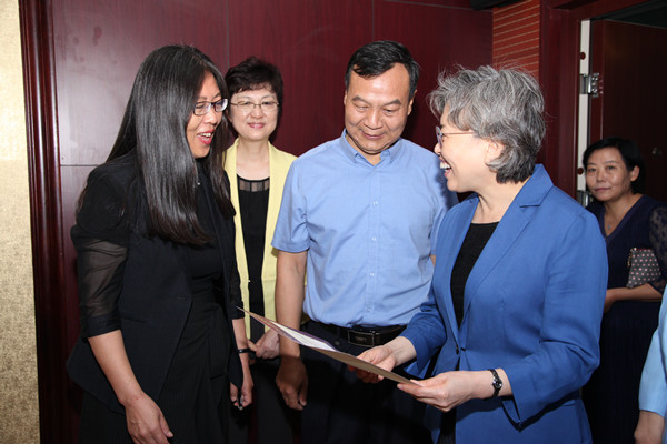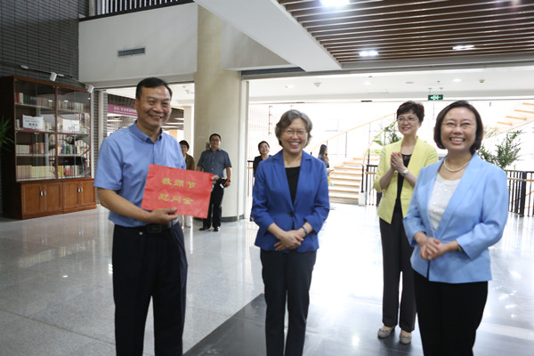 參觀結束后,黃曉薇看望了學校第一屆優秀畢業生、新中國第一代著名播音員葛蘭教授,關切地詢問了她的生活工作情況。黃曉薇還親切慰問了正在辦理新生入學手續的師生,與學校師德標兵、師德先進個人、德育先進個人代表親切交流,向大家致以節日問候和祝福,并代表全國婦聯黨組、書記處向學校贈送了節日慰問金。