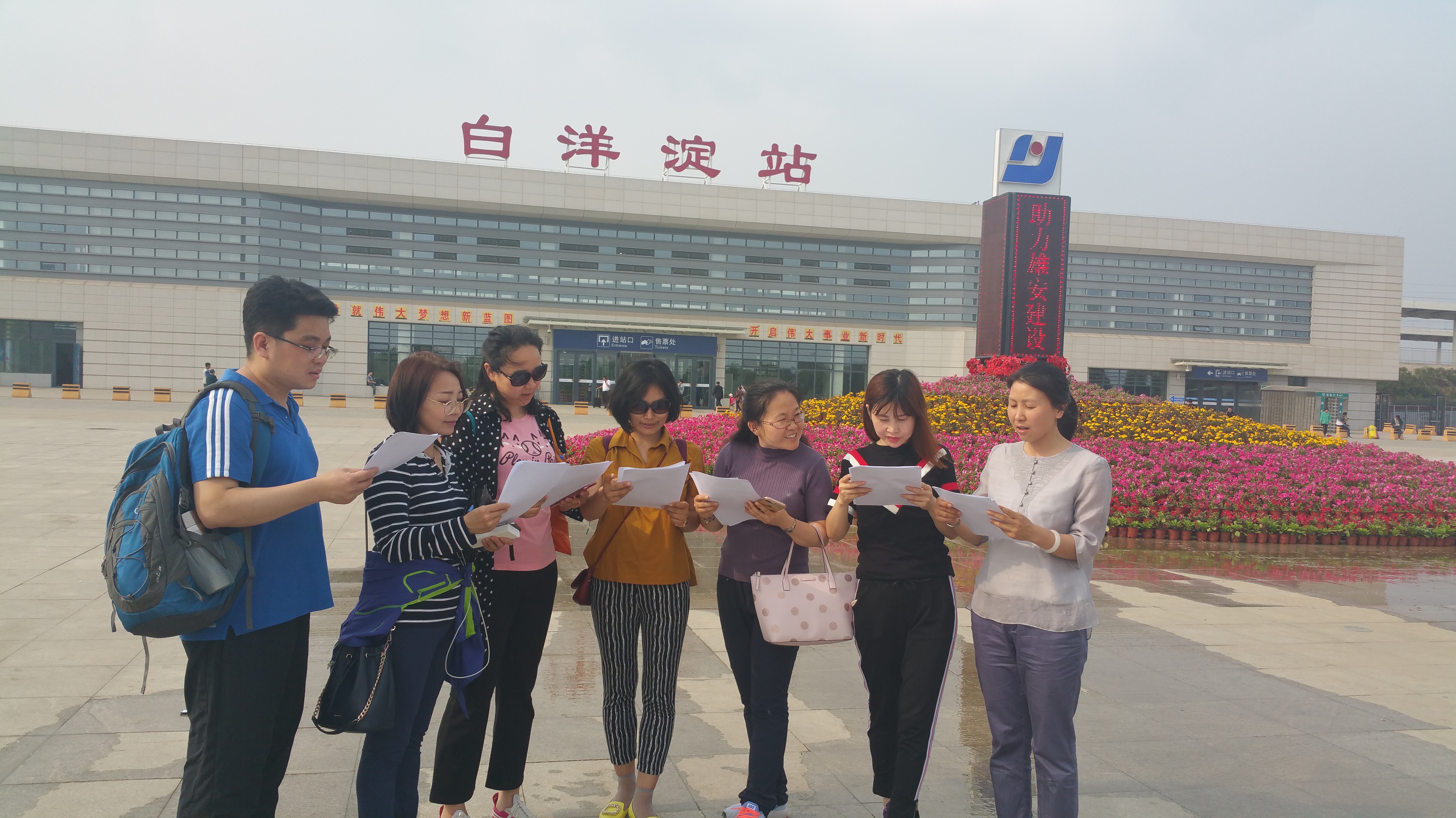 在容城白洋淀火車站候車廣場上,同志們利用候車時間,開展了以“感受新時代——學習《習近平談治國理政》第二卷誦讀活動”為主題的現場學習會,同志們分別誦讀了《用共產黨員的標準嚴格要求自己》《加快建設世界一流大學和一流學科》兩篇文章。