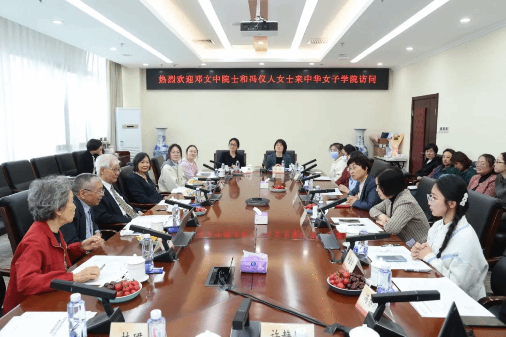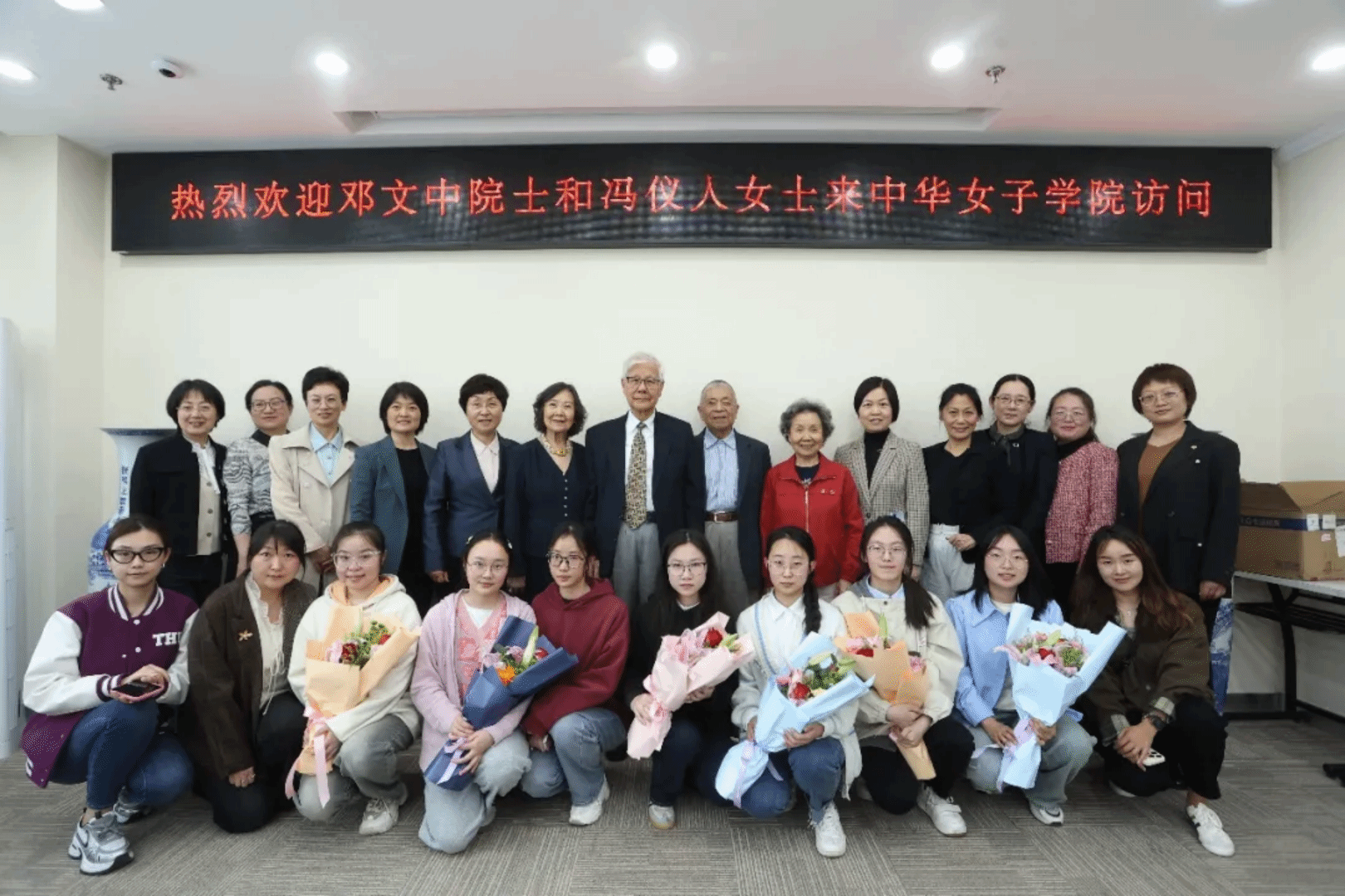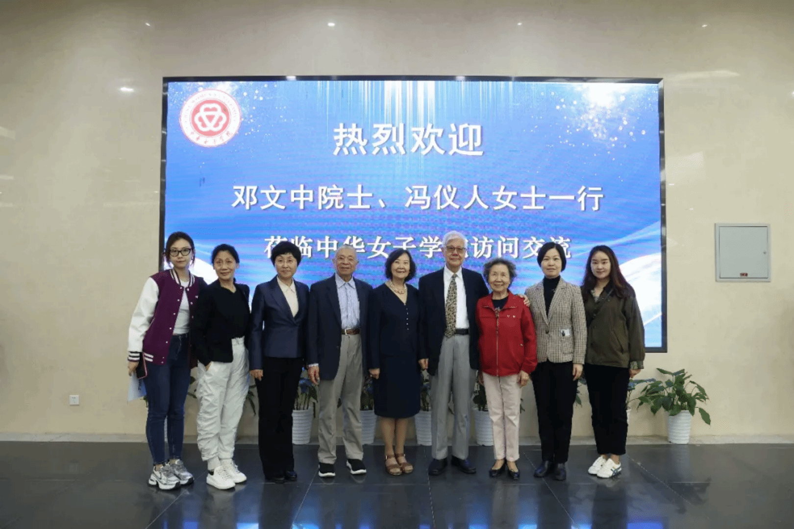 鄧文中院士、馮儀人女士一行還參觀了校史館、圖書館。他們認真傾聽、主動詢問,了解女院人團結奮進的故事、交流中國婦女事業蓬勃向上發展的價值和意義。鄧院士還向學校及圖書館贈送《橋緣:鄧文中在中國40年》一書。在圖書館名人留言簿上,鄧文中院士題詞“中華女子學院教育中國婦女為國爭光!”