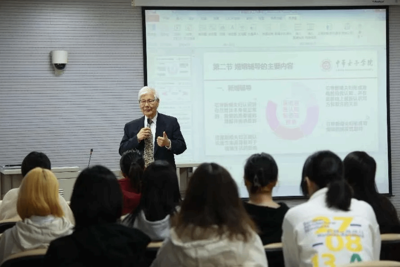 鄧文中院士、馮儀人女士一行與學生一起上課、一起座談。《家庭社會工作》課堂上,鄧院士與學生一起就課程中關于“幸福婚姻”的主題進行了人生智慧分享,就技術與科學提出獨到見解,強調了科學精神的培養。他還囑咐學生要“好好讀書,報效祖國”。